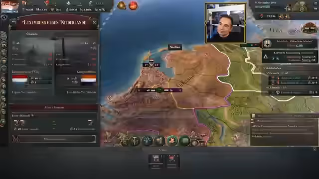 03:49:13Nach der Einladung des Norddeutschen Bundes in den Krieg und der Mobilisierung der Truppen beginnt der Feldzug gegen die Niederlande. Der Streamer kritisiert den untransparenten und zufälligen Schlachtenverlauf, bei dem die KI oft Vorteile zu haben scheint. Trotz anfänglicher Rückschläge gelingt es, an mehreren Fronten vorzurücken. Die Kriegsmüdigkeit beim Gegner sinkt rapide, was den Sieg erleichtert. Der Krieg endet mit der vollständigen Eroberung und der Eingliederung der Niederlande in Luxemburg.
