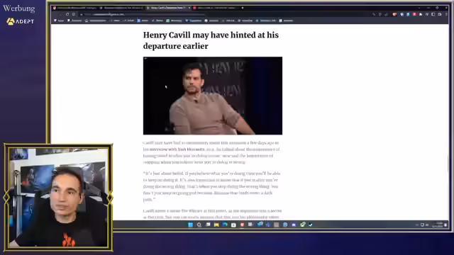 00:14:26Der Streamer beginnt mit einer Begrüßung und zeigt sich erfreut, wieder zu einem regulären Format zurückzukehren, insbesondere dem Spielen von Victoria 3. Nach einer Besprechung vergangener Events wie dem Age of Empires Turnier und einem D&D-Abend springt er auf die über das Wochenende entstandene Überraschungsnachricht an: Henry Cavill verlässt die Witcher-Serie.