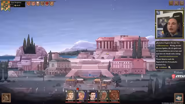03:49:32Der Streamer spielt Bloodgrounds, ein Gladiatoren-Managementspiel in Early Access, das diese Woche in Version 1.0 erschien. Spieler managen eine Gladiatoren-Schule, rekrutieren Kämpfer, rüsten sie aus und schicken sie in taktische Arenenkämpfe. Das Spiel zeichnet sich durch Permadeath und den Verlust der Ausrüstung bei einem Charaktertod aus. Eine neue, interessante Mechanik in der 1.0 ist das "Publikumsbarometer", das durch spektakuläre Aktionen gefüllt werden kann, um Bonusbelohnungen am Ende eines Kampfes zu erhalten.