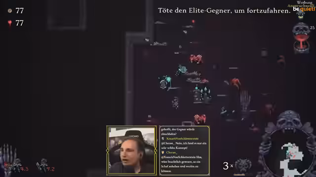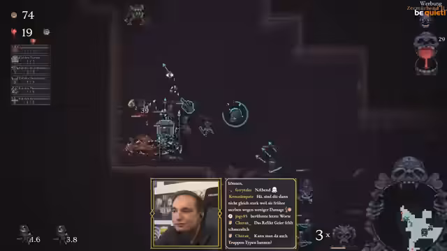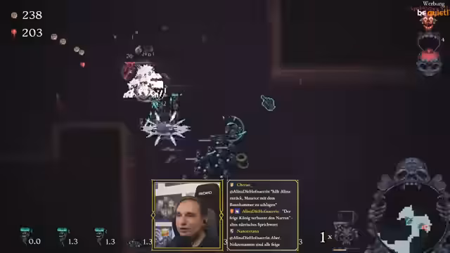 04:08:22Nach den News wechselt der Stream zum Spiel Skullhorde, einem Nekromanten-Roguelike. Ziel des Spiels ist es, eine Horde von Schergen aufzubauen und diese durch Boni zu verbessern. Der Spieler selbst greift nicht direkt in den Kampf ein, sondern lässt seine Truppen für sich kämpfen. Wichtig sind die Währungen Dukaten für den Kauf von Truppen und Korpuskel für den Kauf von Items. Eine zentrale Mechanik ist die Wiederbelebung der Truppen in der Reihenfolge ihres Todes, was ein taktisches Management erfordert.