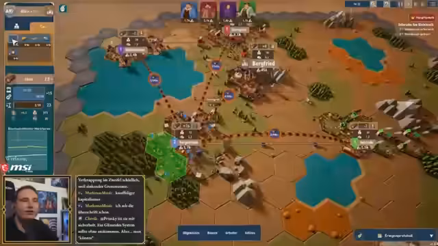 02:04:35Die zentrale strategische Herausforderung ist die Optimierung der Ressourcenflüsse. Der Streamer baut eine Taverne in Mecklenburg, um die dortige Wolle-Überproduktion zu nutzen, was jedoch den Bedarf an anderen Ressourcen wie Kartoffeln erhöht. Es werden Upgrades für Produktionsgebäude erforscht, um die Effizienz zu steigern, und Städte werden ausgebaut, um mehr Händler zu haben. Das Ziel ist ein ausgewogenes Handelsnetz, in dem alle Städte profitieren und der König durch Steuern und Zölle profitiert, ohne einzelne Städte zu überlasten oder in die Armut zu treiben.