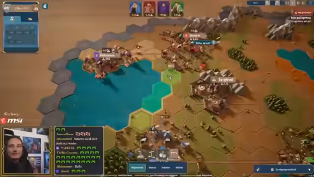 01:17:42Auf die Frage nach Spielen, die privat wegen des Streams zurückgestellt werden, antwortet der Streamer, dass er privat wenig Zeit zum Spielen hat. Spiele, die er im Stream weiterspielt, werden oft auch privat nicht weitergespielt, was er bedauert. Aktuell ist er stark in einer Aufbauspiel-Laune, nachdem ihn ein neues Update bei 'Pioneers of Pagonia' wieder begeistert hat und er mehrere Partien gespielt hat. Auch 'Stronghold' hat seinen Bock auf das Genre neu entfacht. Diese Phase der Aufbau-Spiele spiegelt sich in der Auswahl des nächsten Spiels wider.