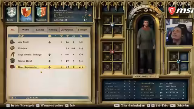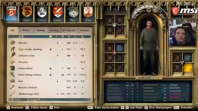 04:17:49Es wird über die Strategie des Feindes diskutiert und darüber, warum Siegesmund bei Nacht auf Talmberg vorrücken würde. Es wird spekuliert, ob Herr Ratzik mit dem Feind kollaboriert. Ein Bote bringt Neuigkeiten und berichtet, dass Siegesmund ein Lager aufgeschlagen hat und sich auf die Erstürmung der Burg vorbereitet. Der Streamer kommentiert die stimmungsvollen Zwischensequenzen und die Atmosphäre des Spiels. Er kritisiert den Hauptcharakter dafür, dass er in die von Invasoren besetzte Stadt zurückkehren will. Der Protagonist erhält die Aufgabe, sich auf dem Wehrgang der Außenmauer zu begeben. Der Streamer erklärt das Spiel für neue Zuschauer: Es ist ein historisch angehauchtes Mittelalter-Rollenspiel, in dem man den Sohn eines Schmieds spielt, dessen Dorf geplündert wurde.