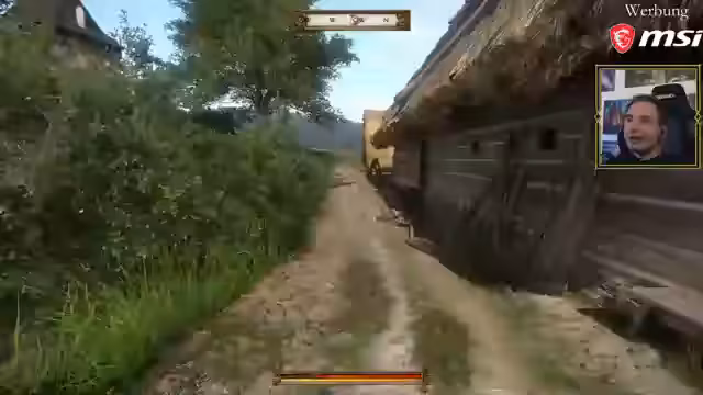 05:18:36Nachdem Heinrich als Wache verkleidet ist, versucht er, die Burgherrin nach ihrem Urteil über sein Aussehen zu fragen. Es gelingt ihm, ein Pferd zu organisieren und aus der Burg zu reiten, um seine Eltern zu bestatten. Am Tor wird er von einem Wächter aufgehalten, der nach dem Grund seiner Reise fragt. Heinrich gibt an, ein Bote von Hauptmann Robert zu sein und nach Uschitze reisen zu müssen, um nach Problemen mit Siegesmund zu suchen. Da der Wächter misstrauisch ist, muss Heinrich ihn bestechen, um passieren zu dürfen. Auf dem Weg nach Skalitz genießt Heinrich die Landschaft und die Freiheit, mit Ross und Rüstung unterwegs zu sein. Er folgt den Wegweisern und versucht, sich in der Welt zurechtzufinden. In einem Dorf trifft er auf einen NPC, mit dem er jedoch nicht interagieren kann, und stillt seinen Hunger mit Essen aus einem Topf.