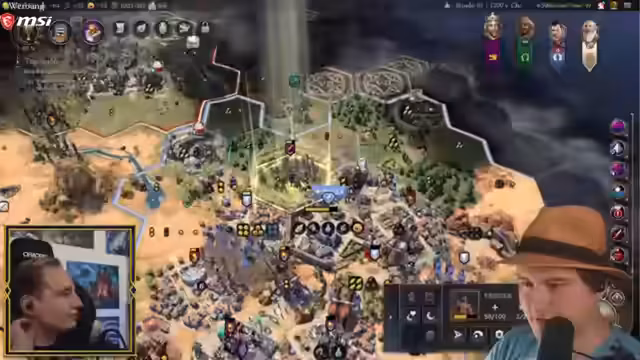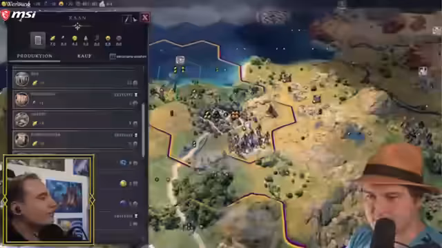 01:48:13Es wird die Idee diskutiert, Städte gut zu boosten, und die Notwendigkeit betont, bald einen Siedler zu produzieren. Der Altar wird als Boost angesehen. Es wird erklärt, dass ein Quartier neben der Hauptstadt einen Wissenschaftsbonus gibt, und die Maya haben einen Bonus, der Wissenschaftsgebäude durch Quartiernachbarschaften verstärkt. Es wird beschlossen, die Krieger nicht zu upgraden, sondern das Gold für die Städte aufzuheben. Die Kaserne wird gebaut, um die Produktion zu steigern. Eine Kooperation bringt plus sechs Forschung. Es wird überlegt, ob ein freundlich gesinnter Spieler angegriffen werden soll, aber davon wird abgeraten. Es wird festgestellt, dass viele Soldaten in der Nähe sind, was einen Angriff unattraktiv macht. Es wird überlegt, Soundeffekte einzubauen. Es wird festgestellt, dass das Gameplay des Streamers für den Coach einsehbar ist, was Überraschungen erschwert. Es wird überlegt, wo der nächste Siedler platziert werden soll. Es wird geplant, nach Südwest zu gehen, um eine neue Siedlung zu gründen. Es wird versucht, Grenzen zu öffnen und ein Wissenschaftsabkommen zu schließen. Es wird beschlossen, die KI nicht zu bekämpfen, sondern erst einmal abzulehnen.