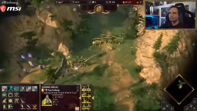 07:39:24Maurice fragt sich, ob der Affenkönig Sun Wukong im Spiel vorhanden ist, obwohl er ein wichtiger Teil der chinesischen Folklore ist. Er erinnert sich, dass dieser in älteren Versionen des Spiels enthalten war, aber schlecht umgesetzt war. Er lobt das Design der chinesischen Einheiten und hebt hervor, dass die neuen mythischen Einheiten im Vergleich zu früheren chinesischen Fraktionen gelungen sind. Er betont, dass die asiatische Mythologie wild und einzigartig ist, was sich in den Einheiten widerspiegelt. Maurice entdeckt die Fähigkeiten des Axtkarrens (Egu Che), einer Nahkampf-Belagerungswaffe, die die Kraft der Hebelwirkung nutzt und deren Name „hungriger Vogel“ bedeutet. Er rekrutiert weitere Truppen und rückt vor. Er erwähnt die Technologie Seidenstraße, die Karawanen früher aktiviert und schneller über begünstigtes Gebiet bewegt, was den Handel mit Verbündeten verbessert. Er testet die Fähigkeit einer Einheit, kurzzeitig zum Bogen zu wechseln, findet sie aber unpraktisch und zu Micro-Management-intensiv. Er vergleicht dies mit anderen Age of Mythology-Spielen, in denen normale Einheiten nicht so viel Aufmerksamkeit erfordern.