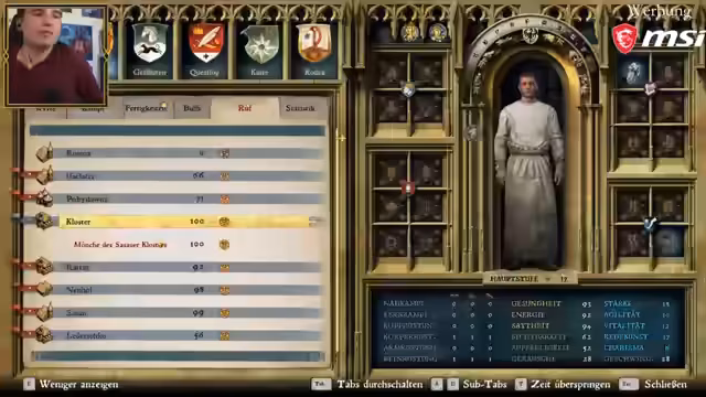 02:48:38Der Streamer gibt sich als Karl aus und wird vom Prior empfangen. Er wird angewiesen, seine weltlichen Besitztümer abzugeben und eine Mönchskutte anzuziehen. Der Streamer deponiert seine Habe in einer Truhe im Gasthaus, um sicherzustellen, dass er sie später wiederbekommt. Er zieht die Mönchskutte an und bereitet sich auf das Klosterleben vor. Der Streamer wird von einem Mönch namens Bruder geführt, der ihm seine täglichen Pflichten erklärt. Er wird in die Gemeinschaft der Ordensbrüder aufgenommen und erhält den Namen Bruder Gregor. Der Streamer wird angewiesen, ein Gebet zu sprechen und die kontroverseste Quest in Kingdom Come zu beginnen.