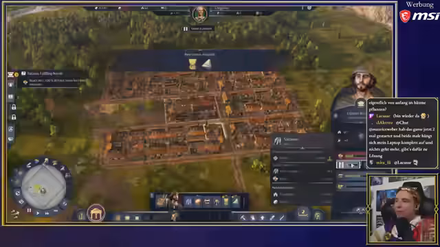04:58:41Nach einer Pause wird der Streamer im Spiel begrüßt. Die Stadt Corgonia hat sich weiterentwickelt und beherbergt nun die ersten Patrizier mit gehobenen Bedürfnissen wie "Vogelzungen in Aspik" oder "Austern mit Kaviar". Das Amphitheater wird weitergebaut, erfordert jedoch mehr Patrizier und eine neue Ressource: Mosaike. Der Streamer erwägt, eine neue Expedition nach Albion zu starten, um Lücken in der Versorgung zu schließen.