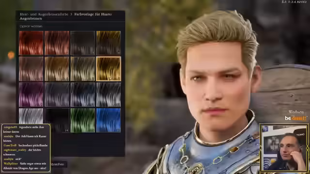 03:32:58Der Stream konzentriert sich auf die detaillierte Gestaltung der Heldengruppe. Beginnend mit dem Paladin, werden die verfügbaren Zauber wie Segen, Göttliche Gunst und Smite besprochen. Der Fokus liegt auf einem adligen, schnöseligen Äußeren. Nachdem verschiedene Gesichtsformen, Frisuren und Bartoptionen getestet werden, entscheidet man sich für ein klassisches, gescheites Gesicht mit blonden Haaren und blauen Augen. Die ständige Diskussion und das Testen von Einzelteilen unterstreichen den kreativen Prozess bei der Charakteranpassung.