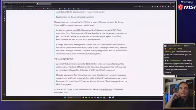 01:46:45Ein Hauptthema der Nachrichten ist die Kritik an Ubisoft, die einen kostenlosen DLC für Assassin's Creed Mirage finanziell von Saudi-Arabien unterstützen ließen. Dieser Deal findet im Kontext der massiven Investitionen der saudi-arabischen Regierung in den E-Sport und die Gaming-Branche statt. Kritiker werfen Ubisoft vor, mit einer Regierung zu kooperieren, die Menschenrechtsverbrechen anordnet, um ihr internationales Image aufzupolieren. Dies führt zu einer intensiven Debatte über moralische Werte, kommerzielle Abhängigkeit und die Verantwortung von Unternehmen.