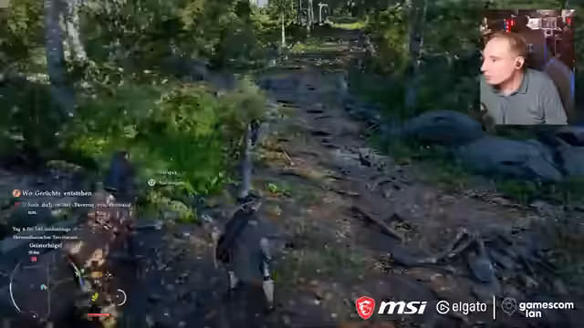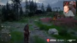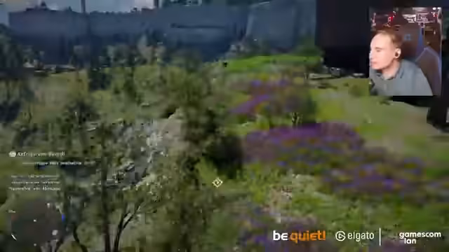 03:43:41Nachdem der Streamer von Giftpflanzen getötet wird, findet er sich weit oben an einem anderen Ort wieder. Der Respawn wird als seltsam und unpraktisch empfunden. Um Quests abzuschließen, muss er mit seinem Pferd den Weg zurück in die Stadt finden, was die unübersichtliche Karte und das manchmal fiese Leveldesign aufzeigt.