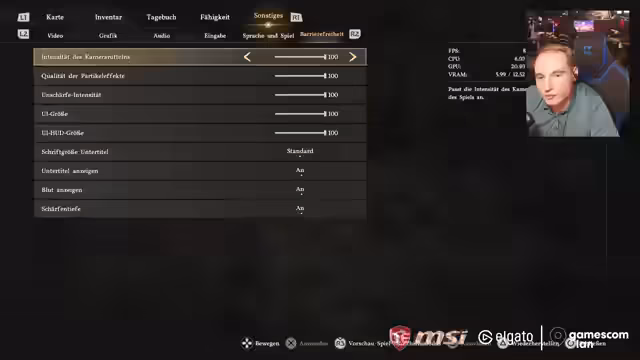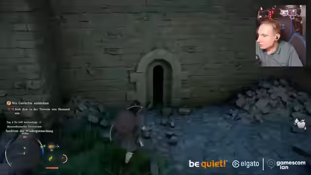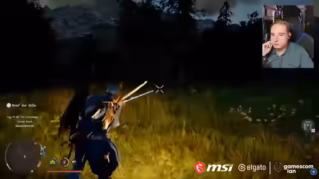 01:33:20Während des Streams trifft der Streamer auf andere Streamer wie Game Two auf der Gamescom-LAN. Es besteht ein Zwiespalt, da ein Teil des Chats aus der Community eines anderen Streamers stammt. Spielerisch wird ein neues Gameplay-Feature getestet, das Einflößen von Tränken durch Entzünden mit einer Laterne und Anwendung auf Feinde. Die Mechanik erfordert präzise Tastenkombinationen (L1+R2). Auch ein Handwerkssystem wird vorgestellt, bei dem man Nahrung und Essen herstellen kann, um sich zu regenerieren oder die Ausdauer zu verbessern.
