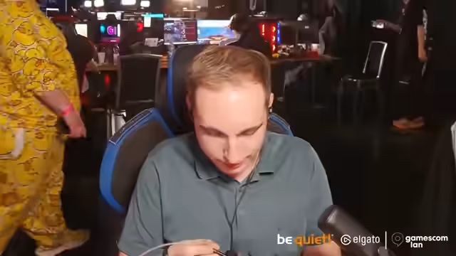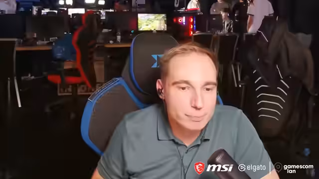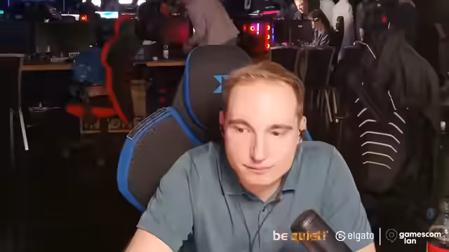 08:55:23Der Streamer zeigt sich von der großen Anzahl an Besuchern und der Vielfalt der Bereiche auf der Gamescom beeindruckt, besonders dass auch weniger gängige Bereiche wie die Trading Card Area gut frequentiert sind. Er erwähnt die Existenz eines speziellen Turniers für Frauen. Bei einem humoristischen Austausch mit seinem Chat beschreibt er die Stimmung auf der Messe als gelegentlich chaotisch, aber dennoch sehr lustig und voller positiv Energie, was die Eventspezialität ausmacht.