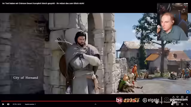 07:41:55Die Welt von Crimson Desert wird als eine beeindruckende Open World mit abwechslungsreichen Landschaften beschrieben, die von grünen Wiesen bis zu roten Wüsten reichen. Sie verbindet klassische mittelalterliche Elemente wie Ritter und Burgen mit anachronistischen Technologien wie Gewehren, Kanonen und sogar primitiven Robotern. Die Welt ist von einer reichen Tierwelt bevölkert, wobei Tiere als Haustiere adoptiert werden können. NPCs in den Städten wirken allerdings oft statisch, während sie auf dem Land Aktivitäten wie Picknick oder Feldarbeit ausführen.
