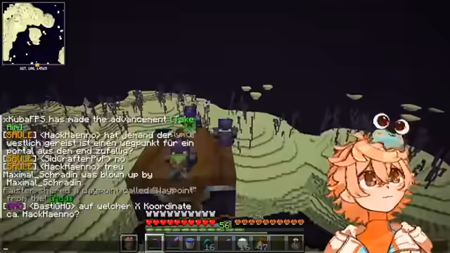 05:38:55Der Streamer und seine Mitspieler befinden sich weiterhin im End und suchen nach einem Ausgang. Es wird diskutiert, ob es schneller ist, mit Elytra und Abflug zu reisen, um einen Ausgang zu finden. Während der Suche kommt das Gespräch auf Musicals und Operetten, wobei der Streamer zugibt, dass er bisher nur eine Operette gesehen hat, aber Disney-Filme als halbe Musicals betrachtet und Gesang mag, was ihn vermuten lässt, dass er Musicals mögen könnte. Die Gruppe ist bei 34.000 Blöcken und hofft auf einen baldigen Ausgang. Es wird überlegt, eine Stasis-Kammer zu bauen, um einen sicheren Rückzugspunkt zu haben, oder ob man sich durch Ausloggen zurücksetzen kann. Die Idee, eine Ender-Perle in einem Wasserstrom zu triggern, wird ebenfalls erörtert, um einen schnellen Ausgang zu schaffen.