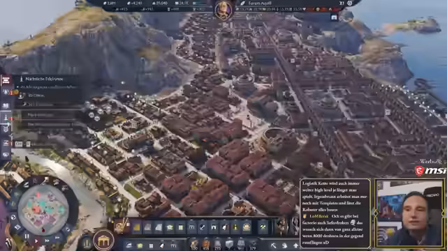 05:30:05Der Streamer analysiert den neuen kosmetischen DLC für Anno 117. Er erkennt an, dass es für eine Zielgruppe von Spielern, die auf ästhetische Gestaltung ihrer Städte Wert legen, ein valides Angebot ist. Allerdings argumentiert er, dass solche Prachtbauten in der Regel die wertvollen Bauplätze im Spiel verschwenden und die Produktivität senken. Er gibt zu, nicht zur Zielgruppe zu gehören, da er bei Anno auf eine optimale und funktionale Stadtplanung bedacht ist und die nötige Geduld für ausladende Parkanlagen nicht aufbringt.