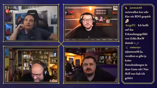 01:40:55Einige Gäste äußern ihre Kritik am ARPG-Genre, besonders im Vergleich zu Diablo 4. Der Fokus auf reines Loot-Game und hektisches Item-Farming wird als negativer Trend gesehen, der auch klassische Rollenspiele beeinflusst. Path of Exile 2 wird für seine Hardcore-Charaktere gelobt, doch die erzählerische Umstellung nach der Kampagne wurde kritisch gesehen. Als Kontrast wird Diablo 4 als "Popcorn-Feuerwerk" beschrieben, bei dem einfach Aktionen zu explosionsreichem Gameplay führen.