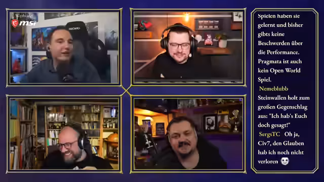 02:03:40Die Runde diskutiert den aktuellen Zustand der großen Strategiespiel-Franchises Europa Universalis 5, Anno 1701 und Civilization 7. Alle drei Spiele werden als durchwachsen angesehen, haben aber für 2026 einen umfangreichen DLC- und Update-Plan. Besonders Civ 7 hatte einen problematisischen Launch, insbesondere durch einen fehlerhaften Multiplayer, was die Streamer-Szene stark betraf.