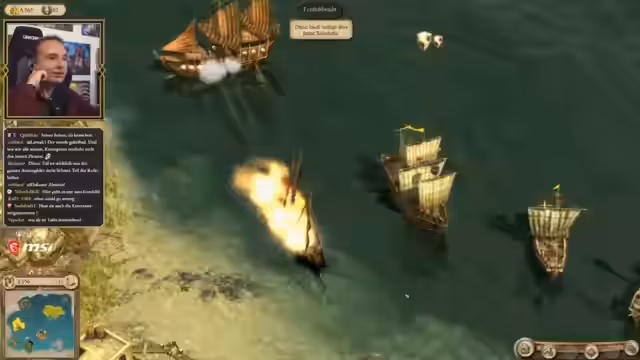 01:50:08Der Fokus liegt auf dem strategischen Aufbau der Hauptinsel. Es wird die Platzierung von zivilen Gebäuden wie einer Schenke und die Notwendigkeit von Unterhaltung für die Bevölkerung diskutiert. Gleichzeitig wird ein wiederkehrendes technisches Problem mit der Grafik-Engine der History Edition angesprochen: das Verschwinden von Schiffen und deren fehlenden Wasserspuren, was nach mehrmaligen Einstellungsänderungen und einem Neustart als persistenter Bug wahrgenommen wird.