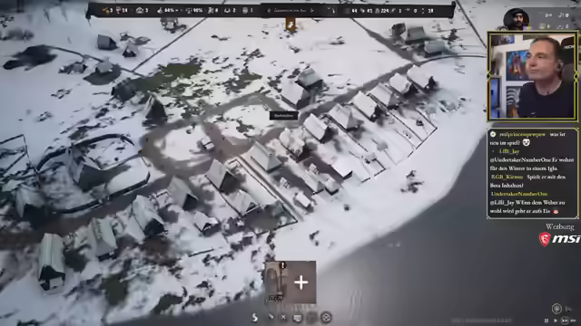 04:05:02Es wird die Möglichkeit erwähnt, Ressourcen in Reserve zu halten. Es wird darauf gewartet, dass neue Familien einziehen, um mehr Produktionsketten aufzumachen. Es wird festgestellt, dass das Spiel anzeigt, dass zwei Familien pro Monat kommen sollen, dies aber nicht passiert. Es wird überlegt, Hinterhoferweiterungen zu bauen, wie Schweine und Ziegen. Es wird festgestellt, dass die Ställe im Hinterhof jetzt Tiere brauchen, was als gute Neuerung empfunden wird. Die Banditen haben Fisch geklaut, was den Bedarf an Waffen erhöht. Es muss eine zweite Nahrungsquelle erschlossen werden, nämlich Pilze. Es wird beobachtet, ob in der Mitte des Monats eine zweite Familie kommt. Die KI baut längere Häuserplots für Obstgärten. Es wird weiter gebaut, um genug Wohnraum zu haben. Es wird auf Geschwindigkeit 2 gespielt, da der Anfang langsam sein kann. Es wird überlegt, Obstgärten oder Gemüsegärten zu bauen. Es wird ein Weg gesucht, Geld zu verdienen. Als Nächstes soll die Kirche gebaut werden. Die Kirche wird seitlich an den Marktplatz gebaut. Es wird sich darum gekümmert, dass Pilze gesammelt werden. Es werden neue Steine gesammelt, um den Steinbruch zu bauen. Es werden weitere Häuser gebaut, um upgraden zu können. Das Spiel wird als schön zum Streamen empfunden. Es wird geschwelgt, wie Gammeln am See weniger gammlig wird. Es wird überlegt, welche Ressourcen mehr benötigt werden. Es soll früher oder später Steuern gesammelt und Geld verdient werden. Es wird Eisen gesammelt, um Werkzeuge herzustellen. Die Kirche steht, und es kann angefangen werden, Häuser abzugraden. Es werden neue Häuser gebaut, da die Kapazität erreicht ist. Es wird versucht, die Siedlung organisch zu entwickeln. Eisen wird gefördert, und das Spiel sieht gut aus. Es wird ein neues System der Siedlungsspezialisierung geben. Es wird angefangen, Gebäude abzugraden, um Wohlstand zu generieren. Banditenlager breiten sich aus, was die Waffenproduktion wertvoll macht. Gammeln am See ist nun ein mittelgroßes Dorf. Es werden ein Schmied und ein Schreiner gebaut.