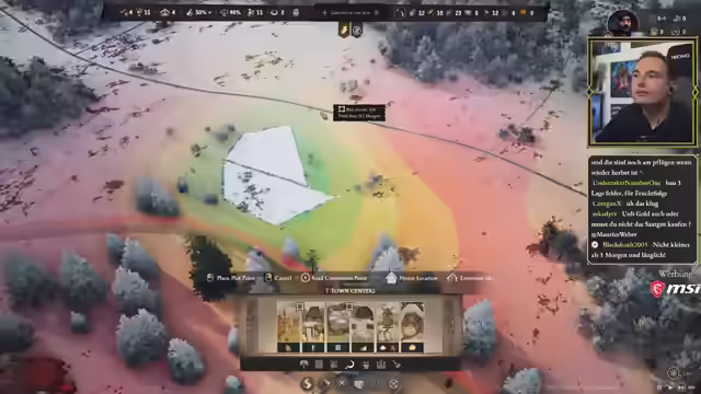 03:22:21Das Interface hat eine mittelalterliche Schriftrollen- und Kunstwerk-Ästhetik, die zur Spielatmosphäre passt. Es werden Arbeiter in die Holzfällerei geschickt, um Holz zu produzieren. Der Siedlungsplatz wird in der Nähe des Brunnens am Ufer des Sees festgelegt. Straßen werden um den Brunnen und zum Marktplatz gebaut, was als spaßig empfunden wird. Häuser und Versorgungsgebäude werden gebaut, während die KI auch schon aktiv ist. Es wird empfohlen, die Beta auf Englisch zu spielen, da die deutsche Version noch Platzhaltertexte enthält. Es wird überlegt, mehr Ochsenposten zu bauen, um den Transport zu verbessern. Die Fischerei wird gebaut, um die Grundversorgung sicherzustellen. Der Ochsenposten ist kostenlos baubar, was den Start erleichtert. Die Priorität wird auf die Nahrungsproduktion gesetzt. Es wird versucht, einen Marktplatz zu bauen, was sich als schwierig erweist. Es werden Häuser am See platziert, um neue Familien anzusiedeln. Lagergebäude werden in der Nähe des Marktplatzes platziert. Es wird darauf hingewiesen, dass die Vorräte nass werden können, wenn die Vorratsgebäude nicht schnell genug gebaut werden. Die ersten Plots werden gebaut und die Siedlung entfaltet sich am Ufer des Sees.