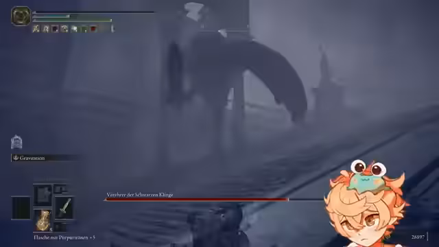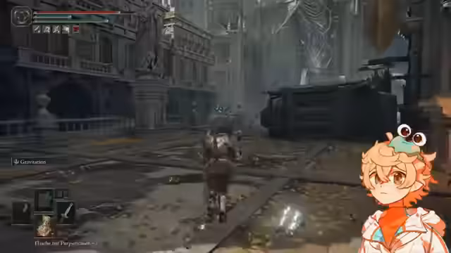 03:50:11Nach dem Sieg über den Boss reist der Streamer zur Gordano-Stadt. Sein Hauptziel ist es, dort eine Gnade (einen Checkpoint) zu finden, um seinen Fortschritt zu sichern und weiteres Risiko zu vermeiden. Die Erkundung ist geprägt von der Suche nach Wegen, Gegnern, die man am besten meidet, und dem Aufspüren wertvoller Gegenstände wie Schwarzer Bogen und Schmiedesteinfragmente.