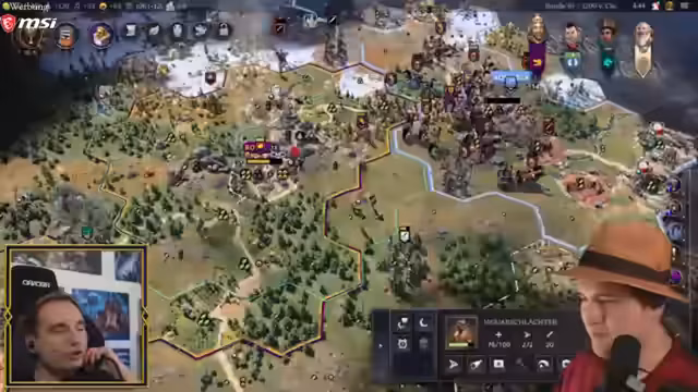 01:32:53Der Streamer erklärt, dass er die Städte zu weit auseinanderbaut und die Verteidigung dadurch erschwert wird. Er kontert dies, indem er Bogenschützen kauft, die die Stellung halten. Er möchte die Techniken der Weber erlernen. Er möchte, dass der Coach das Gold nimmt. Er will, dass die Zuschauer Prime-Abos abschließen. Er geht Kaffee trinken. Er erklärt, dass der einfachste Konter wäre, ihn direkt anzugreifen. Er zieht den Bogenschützen zurück. Er bereitet den Heerführer vor und überrennt den Gegner in der zweiten Hälfte. Er spielt auf Zeit. Er hat keine Nachteile, wenn ihn keiner angreift. Er befördert den Heerführer. Er wählt Gold für jeder eine des Commanders. Er setzt die Datteln dort ein, wo noch nicht so viel Wachstum ist. Er sieht Machiavelli direkt. Er hat Sterzig gefunden. Er hat sich schon mal im RL getroffen. Er siedelt in der Nähe von Sterzig, was sehr riskant ist. Er will seinen Spielstil aggressiv durchziehen. Er hat jetzt verloren. Er bekommt mehr Kampfstärke für Bogenschützen. Er will das Unique Viertel so schnell wie möglich haben. Er hat noch nicht entschieden, ob er Altar oder Villa zuerst bauen soll. Er will die Pferde mitnehmen. Er nimmt die Technik mit. Er studiert das Gerät. Er stiehlt Fortune und Kultursachen. Er nimmt den Altar. Er wird von zwei Siedlungen angegriffen. Er ist überrascht. Sie haben sogar einen Heerführer.