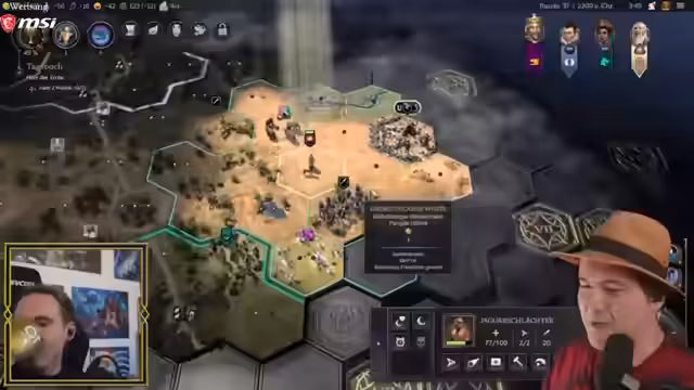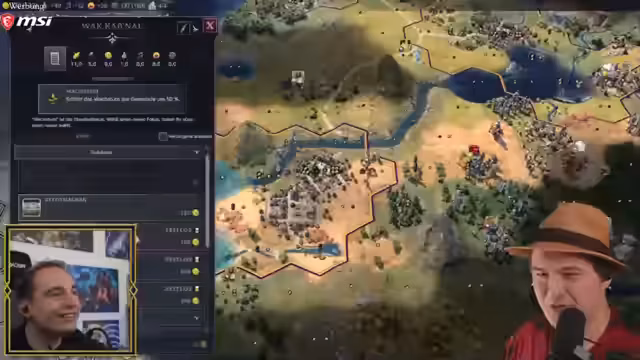 01:45:58Der Streamer beschäftigt sich intensiv mit dem Gameplay von Civilization 7. Er berichtet über eine unerwartete Naturkatastrophe, bei der ein Schiff beschädigt wurde, und ein Verständnisproblem bei der Heil-Mechanik von Einheiten. Er erwähnt, dass das Spiel gut auf leistungsärmeren Systemen läuft und die Anforderungen als human einzustufen sind. Zudem wird die Möglichkeit, Technologie-Kodizes manuell in Forschungsgebäude zu platzieren, als wichtiges Detail hervorgehoben, da das dies nicht automatisch geschieht.