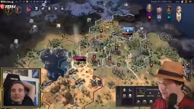 02:39:26Es wird eine Frustration über die unklare Anzeige im Interface von Civ 7 geäußert, insbesondere wenn es um die Darstellung von Einheiten und deren Zustand geht. Man hätte gedacht, dass eine Einheit ausgelöscht wäre, aber sie lebt noch. Es wird eine zweite Verteidigungslinie aufgebaut, um Angriffe von hinten abzuwehren. Der Fokus liegt darauf, sich auf einen Spieler zu konzentrieren und so viel wie möglich mitzunehmen. Kamele werden erobert und zu Homa geschickt. Ein Tornadoausbruch wird als Strafe für das vorherige Glück interpretiert. Es wird überlegt, wie man dem Volk erklären kann, dass der Tornado nicht wirklich existiert hat. Es wird die Schwierigkeit betont, alle vier Wege (vermutlich Siegbedingungen) in der begrenzten Zeit zu verfolgen. Ein Kamel wird mitgenommen, und die Wunderproduktion wird priorisiert. Die anderen Spieler sehen zwar die Meldungen über den Bau von Wundern, aber nicht die Animationen. Es wird überlegt, ob man Happiness oder Forschung priorisieren sollte. Ein Tipp für Multiplayer-Events ist, Ziele erst auf der Zielgeraden zu erfüllen, um nicht frühzeitig Aufmerksamkeit zu erregen. Die Bedeutung von Diplomatie und die Suche nach einem Partner im Crime werden erneut betont.