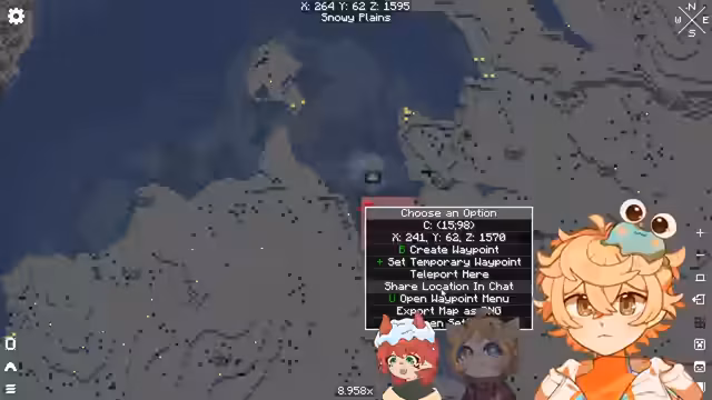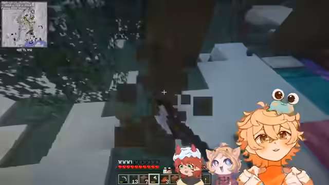 Im Fokus steht eine Tour über den Minecraft-Server mit Anuki_Kaida und smolayu. Dabei werden verschneite Bauwerke wie Baumhäuser und Farmanlagen besichtigt. Ein Schneegestöber setzt ein und bildet eine dynamische Kulisse, während Details zur Umgebung erkundet und Ideen ausgetauscht werden. (299 Zeichen)