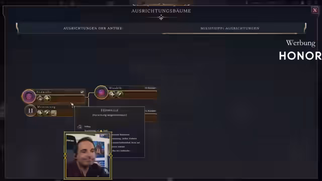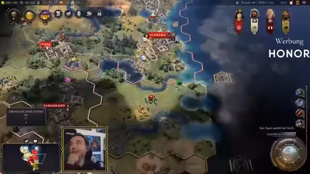 02:35:16Die Streamer tauschen diplomatische Abkommen und Handelsangebote aus. Maurice schickt Ranger ein "lokales Fest" als Unterstützung, was后者 jedoch nicht begeistert aufnimmt. Sie diskutieren über die Notwendigkeit von Forschungsabkommen und wie diese funktionieren. Gleichzeitig kämpfen sie mit den Einschränkungen der Handelsreichweite und bemerken, dass diese durch bestimmte Stadtstaaten erhöht werden kann.