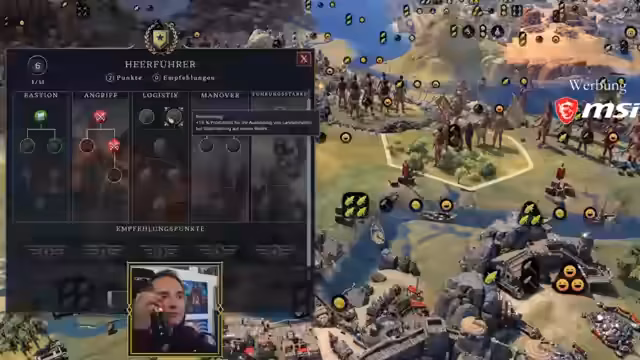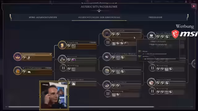 07:44:26Die Streamer analysieren das Militärsystem und das Punkte-Vergabe-Mechanismus im Spiel. Sie erkennen, dass Militärschulen nur über Punkte in fernen Ländern erworben werden können, was den Krieg auf dem Heimatkontinent eigentlich unlogisch macht. Das Spiel scheint darauf abzuzielen, dass Kriegskolonien in der neuen Welt geführt werden. Die Mongolen werden als besonders aggressives Volk erwähnt, das schnell Militärpunkte sammeln kann, was historische Genauigkeit anstrebt. Die Streamer diskutieren den Sinn von Krieg auf dem Heimatkontinent, da dieser keine Punkte bringt.