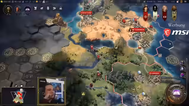 04:29:35Die Spieler diskutieren über die Bedeutung von Gold als Ressource in Civilization 7, insbesondere für die Aufrechterhaltung einer starken Armee. Ranger bemerkt, dass er aufgrund seiner Armee kein Gold hat und Gold als die overpowered Ressource von allem ansieht. Maurice bietet Ranger einen Wissenschaftsboost an, was als nette Geste wahrgenommen wird. Die Spieler beobachten, wie lange es dauert, bis bestimmte Ziele erreicht sind. Es wird erwähnt, dass die Barbaren keine gute Position haben. Die Spieler tauschen sich darüber aus, welche Gebäude Werke aufnehmen können. Maurice greift ohne seinen Heerführer an, was zu einem Verlust von Erfahrungspunkten führt. Steinwallen bietet Maurice gemeinsame Forschung als Ausgleich für den erlittenen Krieg an. Es wird bestätigt, dass die Weltkarte zufällig generiert ist und nicht auf der realen Welt basiert. Die Spieler überlegen, ob sie unsinnige Städte gründen sollen, um Raum zu gewinnen und Punkte für das Städtevermächtnis zu erhalten. Es wird festgestellt, dass sich das Ende des ersten Zeitalters nähert und dass man in einem Stream-Event wahrscheinlich Zugtimer anschalten sollte.