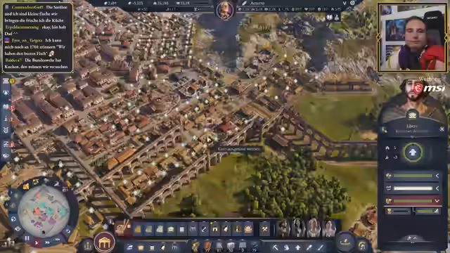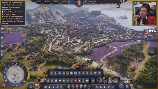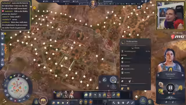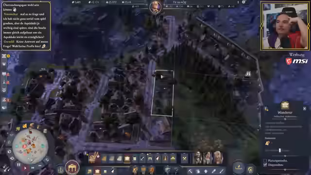 03:50:02Die Planung der römischen Siedlung sieht vor, den Sumpf weitestgehend zu beseitigen, bis auf ein kleines Fleckchen für die Ziegelproduktion, die auch von Römern benötigt wird. Alternativ könnten Ziegel aus Latium importiert werden, wo sie ohne Sumpf produziert werden. Es wird entschieden, Ziegel von einer anderen Insel zu importieren, um die Siedlung komplett römisch auszurichten und den Sumpf zu eliminieren. Ein Aquädukt ist für die Zukunft geplant, welches jedoch viel Platz und Ziegel erfordert. Die Möglichkeit, Aquädukte vorzuplanen, wird als fehlendes Feature kritisiert, da die Dynamik des Baus zu unvorhersehbar ist. Ein Raid von Karisak wird begrüßt, und der Streamer teilt seine Freude über die Entwicklung der Stadt. Ein besonderes Ereignis ist das Auftauchen von Brian, dem Vielfach Gesegneten, einem Spezialisten, der Schreine in Reichweite mit Zufriedenheit, Gesundheit und Brandsicherheit versorgt und in die Hauptstadt mitgenommen werden soll. Kritik wird an den "dummen" Sprüchen der Bevölkerung geäußert, insbesondere der Libertus mit seinen Sardinen-Witzen, die als "nervig" und potenziell KI-generiert empfunden werden. Der Streamer bittet um Belege für die KI-Generierung von Sprüchen, um seine Argumentation zu untermauern.