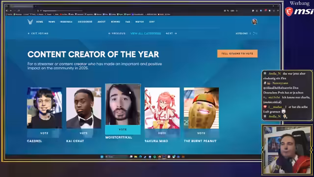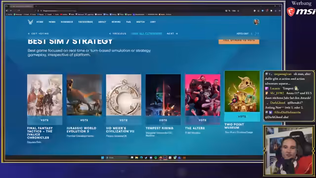 00:14:34Der Streamer beginnt mit den Game Awards und überspringt die Kategorien für das beste E-Sport-Team und den besten E-Sport-Athleten, da er die Szene nicht verfolgt und keinen informierten Vote abgeben kann. Er kritisiert die zunehmende Finanzierung des E-Sports durch Glücksspielwerbung. In der Kategorie „Bestes E-Sport-Spiel“ wählt er League of Legends, da er dieses Spiel in seiner Studentenzeit gerne verfolgt hat, obwohl er zugibt, dass er sich eine Nominierung für Age of Empires 2 oder den Spieler Hera gewünscht hätte. Bei der Kategorie „Content Creator des Jahres“ äußert er sich positiv über Moist Critical, den er nicht nur kennt, sondern auch gerne schaut, und lobt dessen Transparenz und Meinungsstärke, insbesondere seine Entscheidung, Spenden in seinen Streams abzuschalten, da er bereits Millionen über YouTube verdient.