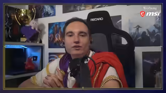00:10:22Der Streamer begrüßt sein Publikum als „werte Edelleute“ und kündigt an, wieder Anno zu spielen. Er trägt ein Anno-inspiriertes Kostüm, eine Toga, die er auch für den „Just Chatting“-Teil des Streams beibehält, da sie nicht schnell an- und auszuziehen ist. Er erwähnt, dass er langsam aus der „Anno-Woche“ auftaucht und bedankt sich für die Unterstützung im Chat, darunter Hypetrains und langjährige Abonnenten. Bevor er mit Anno fortfährt, möchte er sich dem Game Award Voting widmen, da er selbst daran interessiert ist und die Meinungen der Zuschauer diskutieren möchte. Er plant, die Kategorien in umgekehrter Reihenfolge abzuarbeiten, beginnend mit den weniger wichtigen, um das „Game of the Year“ nicht gleich am Anfang abzuhandeln.