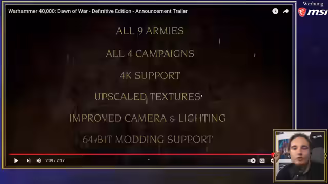 00:48:37Eine der positiven Wochennews ist die Ankündigung einer Definitive Edition für Dawn of War. Das klassische RTS-Spiel wird remastert und erhält native 1080p-Auflösung, echte Schatten, einen größeren Kamera-Bereich und 64-Bit-Unterstützung für Mods. Dies bedeutet, dass alle bekannten Mods wie Apocalypse und ein interner Mod-Manager spielbar sein werden. Das komplette Spiel inklusive aller Add-ons wie Soulstorm wird enthalten sein.