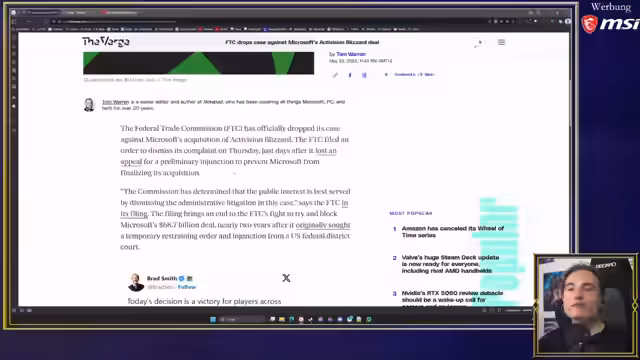 00:55:55Der langjährige Rechtsstreit der Federal Trade Commission (FTC) gegen die Übernahme von Activision Blizzard durch Microsoft ist nun offiziell beendet. Die Klage der FTC vor Gericht wurde verloren, was das Ende des monatelangen Widerstands markiert. Microsoft hat dieses Risiko bei der Übernahme in Kauf genommen. Analysten vermuten, dass auch der politische Wechsel in den USA zum Erliegen des Verfahrens beigetragen haben könnte.