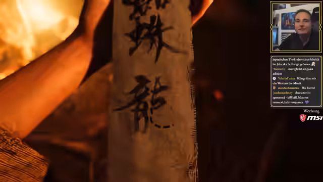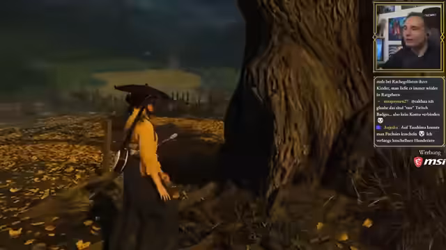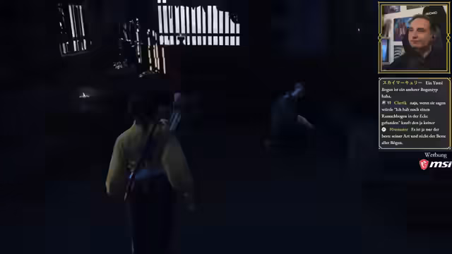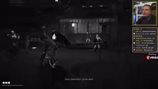 03:07:43Im Gasthaus stellt der Streamer die verschiedenen Kinomodi des Spiels vor, die von Akira Kurosawa inspiriert sind. Aktiviert er den Schwarz-Weiß-Filter mit japanischer Sprachausgabe und deutschen Untertiteln, was das Spiel wie einen alten Samurai-Film wirken lässt. Er testet auch andere Modi wie den Mieke-Modus und den Watanabe-Modus mit näherer Kamera und mehr Blut. Dies verändert nicht nur die Optik, sondern auch die Spielweise, da Angriffe außerhalb des Bildschirms schwerer zu erkennen sind.