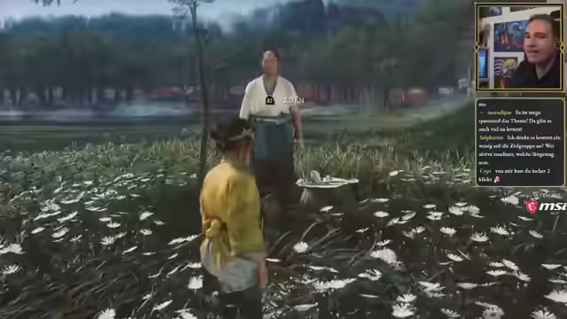 01:46:46Es wird eine PlayStation 5 Pro als Dauerleihgabe von Sony für den Stream vorgestellt, um das Spiel in maximaler Optik zu präsentieren. Anfangs gibt es technische Schwierigkeiten mit den Farbeinstellungen in OBS, die dumpf wirken. Das Problem wird auf HDR-Einstellungen zurückgeführt, die nach dem Umschalten der HDMI-Kabel zurückgesetzt wurden. Nach Anpassungen sehen die Farben synchron und gut aus. Es wird kurz überlegt, ob Ghost of Tsushima für den PC empfehlenswert ist, was bejaht wird. Im Spiel selbst werden verschiedene Dialogoptionen (Deutsch, Englisch mit Untertiteln, Japanisch mit Untertiteln, Kurosawa-Modus) vorgestellt, wobei aufgrund der Hörgewohnheiten der Mehrheit der Zuschauer zunächst Deutsch gewählt wird. Die anderen Modi sollen später gezeigt werden. Vor dem Start des Spiels wird eine kurze YouTube-Aufnahme gemacht und darauf hingewiesen, dass der Stream von Playstation gesponsert wird.