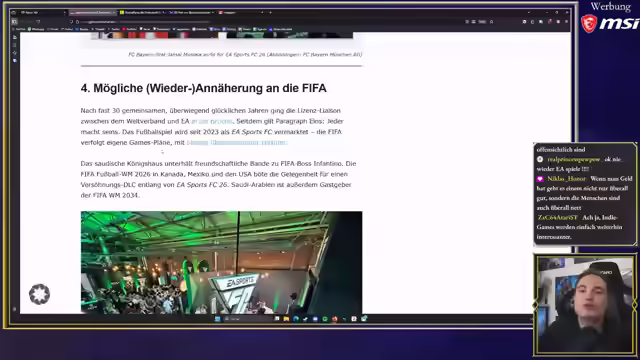 00:47:34Es wird erwartet, dass die neuen Besitzer von EA versuchen werden, durch den Einsatz von KI Kosten zu sparen, was zu Entlassungen führen könnte. Der Streamer äußert Verständnis für die Frustration von EA-Mitarbeitern, die an Spielen arbeiten und nun mit der Übernahme durch ein menschenrechtsverachtendes Regime konfrontiert sind. Als persönliche Konsequenz kündigt der Streamer an, dass er Battlefield, das nächste Woche erscheinen soll, nicht spielen wird. Er betont jedoch, dass es jedem selbst überlassen ist, wie er mit der Situation umgeht und welche Spiele er boykottieren möchte. Der Streamer sieht seine Rolle darin, zu informieren und seine eigenen Entscheidungen zu teilen, ohne anderen vorzuschreiben, was sie tun sollen. Er kritisiert, dass der Gaming-Markt zunehmend von immer weniger Superfirmen konsolidiert wird, was sich negativ auf die Kunden auswirken könnte. Der Streamer listet weitere Investitionen Saudi-Arabiens im Gaming-Bereich auf und verweist auf die Komplexität der Situation, da auch Tencent in vielen Unternehmen involviert ist. Er betont, dass man sich bewusst sein sollte, dass diese Entwicklungen potenziell negative Auswirkungen haben können, auch wenn sie nicht sofort sichtbar sind. Abschließend kündigt der Streamer an, dass er am Freitag mit Michael Graf von GameStar und Petra Fröhlich von Gameswirtschaft über das Thema diskutieren wird.