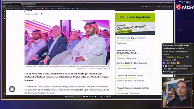 Der Videospielkonzern Electronic Arts wechselt für 55 Milliarden Dollar den Besitzer. Käufer ist ein Investorenkonglomerat unter Führung des saudiarabischen Public Investment Fonds und der Firma von Jared Kushner. Die Übernahme erfolgt trotz Kritik an der Menschenrechtslage in Saudi-Arabien. Finanzexperten bewerten den Deal als hochriskant, da EA mit erheblichen Schulden belastet wird. Dies könnte zu restriktiveren Monetarisierungsstrategien und möglichen inhaltlichen Einschränkungen in Spielen führen.