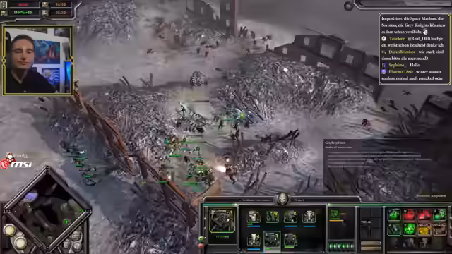 03:51:55Nachdem der Streamer von Orks und Chaos attackiert wird und hohe Verluste hinnehmen muss, beschließt er, sich zurückzuziehen und die Basis zu sichern. Er gibt zu, dass er zu spät auf Anti-Fahrzeug getecht hat und dies ein Anfängerfehler war. Er entscheidet sich, eine neue Schlacht zu starten und schneller auf Fahrzeugbau zu setzen, anstatt auf Anti-Fahrzeug-Einheiten zu bauen. Er plant, die Frontlinie zu halten und die Verbündeten zu unterstützen.