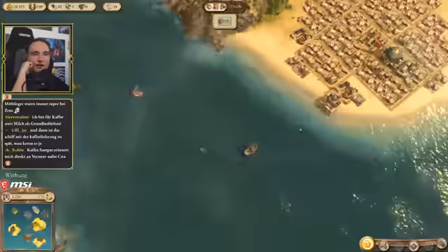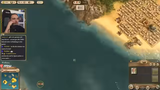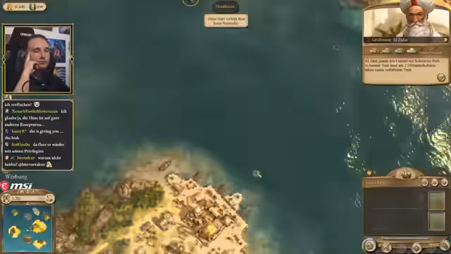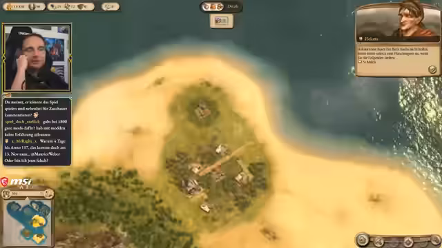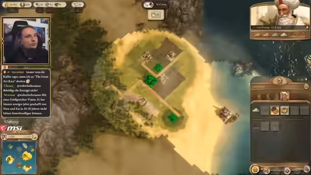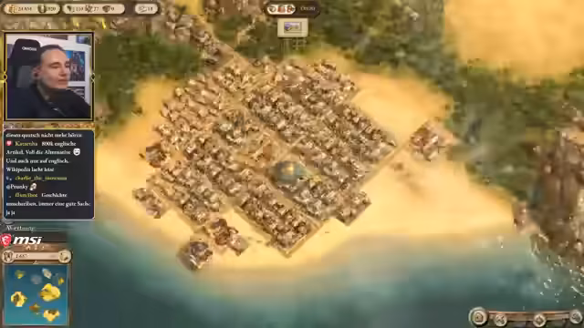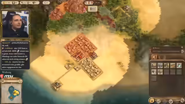 03:37:21Die Stärken von Phasus Frontier, wie die nicht-linearen Ressourcenoptionen und das Handelssystem, werden hervorgehoben, da sie eine Abwechslung zu den vorgegebenen Mustern vieler Aufbauspiele bieten. Der Streamer kehrt zur Anno 1404 Mission zurück, wo er eine Botschaft von Lord Northburgh erhält, der bei den Assassinen gefangen gehalten wird. Um ihn zu befreien, wird eine Karte benötigt, für die Papier und Indigo erforderlich sind. Er muss diplomatische Ränge bei Al Zahir erwerben, um neue Gebäude freizuschalten und die Produktion von Indigo und später Seide zu ermöglichen. Die Suche nach Seidenfruchtbarkeit führt ihn zur Insel „Skorpionenhort“. Er kritisiert erneut die fehlende vollständige Warenlogistik in Anno, bei der Waren zwischen Lagerhäusern teleportiert werden, im Gegensatz zu Siedler, wo Transportketten vollständig berücksichtigt werden müssen. Um die notwendigen 120 Gesandten für die Befreiung von Lord Northburgh zu gewinnen, müssen Mosaike produziert werden, wofür Quarz und Ton benötigt werden. Der Streamer beginnt, Tongruben und Mosaikmacher zu bauen, während er weiterhin versucht, die Wirtschaft zu stabilisieren und die Steuereinnahmen zu maximieren.