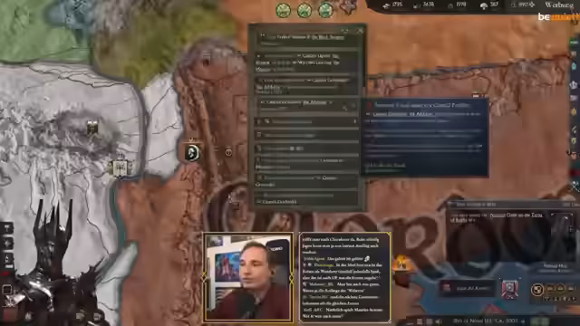 01:16:51Der Streamer wechselt zwischen seiner Sauron-Partie und den anderen Spielern. Er kritisiert die Reise- und Event-Mechaniken von Crusader Kings 3, die er als zu aufwendig und oft banal empfindet, besonders wenn sie die Hauptspielelemente stören. Er berichtet von seiner finanziellen Notlage und den Herausforderungen, die durch das geringe Domänenlimit seiner Maya-Eigenschaft entstehen. Gleichzeitig beobachtet er die Entwicklungen auf der Weltkarte, wie zum Beispiel die Freundschaft zwischen Zwergen und Nordmännern, und muss seine Strategie ständig an die sich verändernden Umstände anpassen, während er versucht, seine Macht in Mordor zu konsolidieren und auszubauen.