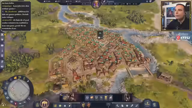 06:46:41Im Gameplay-Teil von Anno 117 konzentrierte sich der Streamer auf den Bau und die Verwaltung seiner Siedlungen in den Regionen Latium und Albion. Ein zentrales Ziel ist es, die Stufe der Equites freizuschalten, um den Bau von Aquädukten zu ermöglichen. Dies erfordert eine straffe Planung, da bestehende Gebäude für den Bau entfernt werden müssen. Ein wiederkehrendes Problem sind niedrige Zufriedenheitswerte, die durch strategische Platzierung von Stadtwachen und anderen Bauten verbessert werden müssen, um Unruhen zu verhindern.