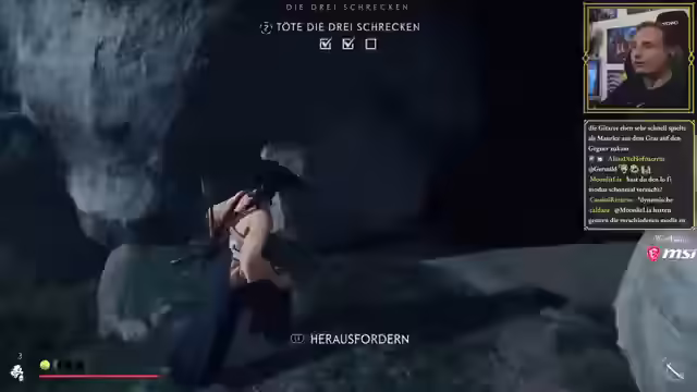02:34:14Das Gameplay von Ghost of Yotei wird fortgesetzt, wobei der Fokus auf Rache-Quests und dem Erlernen der Zwei-Katana-Technik liegt. Der Schwierigkeitsgrad wird erhöht, und das HUD wird angepasst, um die Lebensleiste sichtbar zu machen. Es werden Talismane gefunden, die die maximale Gesundheit erhöhen, und die Maske der Schlange wird als unpassend empfunden. Das Doppelkatana kann verbessert werden, wofür jedoch eine Schmiede benötigt wird. Ein Kopfgeld in der Nähe soll eingelöst werden, um den neuen Schwierigkeitsgrad zu testen. Die Suche nach Hinweisen gestaltet sich schwierig, während Bambus gesammelt wird. Eine Aufgabe führt zu einem Friedhof, wo sich ein Schurke versteckt hält. Es wird ein Duell mit einem Kopfgeldjäger ausgetragen, bei dem der Western-Einfluss in der Musik erkennbar ist. Der Kampf gestaltet sich herausfordernd, und verschiedene Angriffsmuster müssen durchschaut werden. Es wird überlegt, ob vor dem Kampf gerastet werden sollte, da nur noch wenige Gesundheitspunkte vorhanden sind.