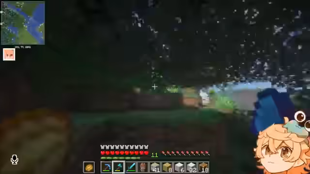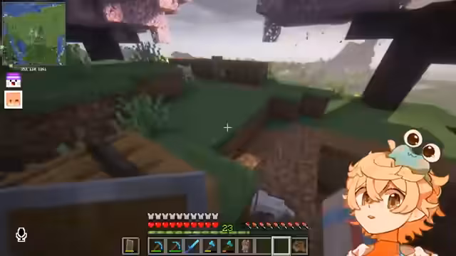 00:10:33Ein unvorsichtiger Moment in der Nacht führt zu einem tödlichen Angriff, bei dem der Streamer fast sein Leben verliert. Nur durch das schnelle Anziehen von Rüstung überlebt er knapp. Die Nächte werden als extrem gefährlich beschrieben, weshalb ein Bett in der Basis dringend benötigt wird. Die Basis selbst wird kontinuierlich erweitert; Materialien wie Bambus und Leder werden gesammelt. Diskussionen über Baumaterialien (geschältes vs. ungeschältes Holz) führen zu einer Mehrheitsentscheidung im Chat für geschältes Holz für den Hausbau.