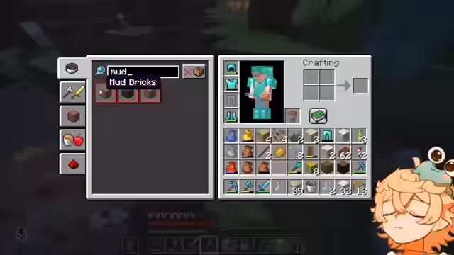 04:04:39Der Streamer wechselt das Thema und stellt Schlamm her, indem er Wasser auf Erde aufträgt. Er erkundet verschiedene neue Blöcke für das Haus, wie Packed Mud und Mud Bricks, die zu seinem passenden Materialmix passen könnten. Im Chat werden ihm gestrippte Birke und Sandstein als mögliche Alternativen vorgeschlagen. Er sammelt zudem Pilze und stellt fest, dass seine bestehenden Materialien kaputt gegangen sind, da er seine Lagerorte nicht mehr im Griff hat.