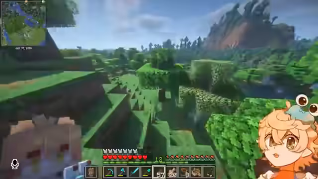 04:25:05Nachdem 13 Fische für zwei Katzen gefangen wurden, wird die Vermehrung in Betracht gezogen. Das Hauptziel bleibt das Holen von Katzen und Amadillos (Armadillos), um den Berg zu schützen. Ein Dorf mit Villagern wird gesucht, da dort Katzen spawnen. Gleichzeitig wird ein Pferd zurückgelassen und später abgeholt. Ein TikTok-Account (Mdado2) wird erwähnt und geplant, nach dem Jungle-Trip noch Boote zu craften.